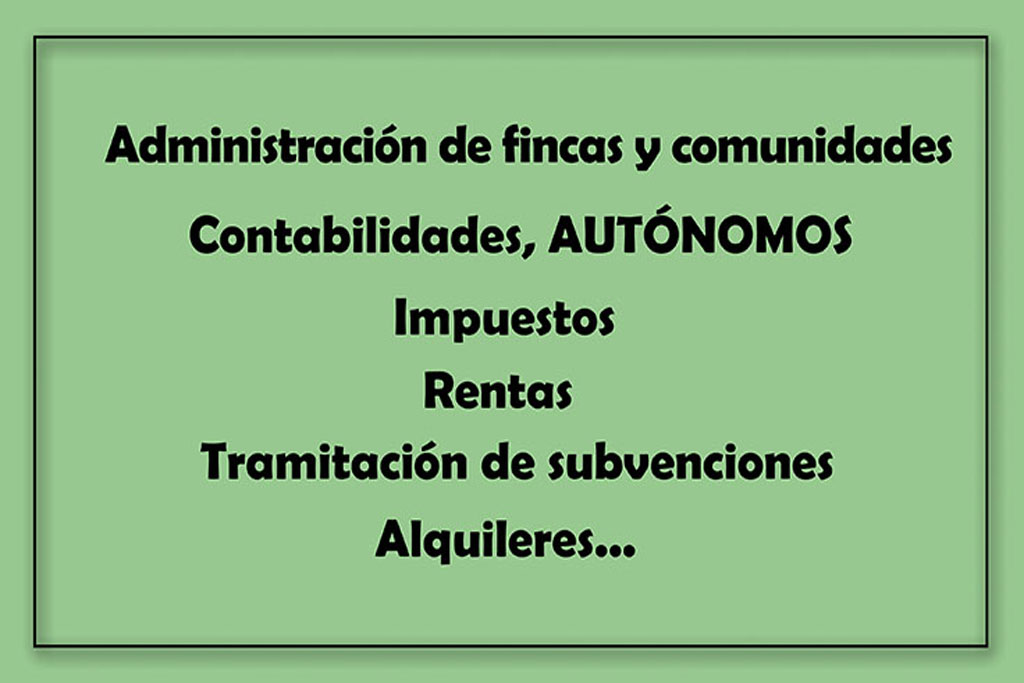 Administracion de fincas y comunidades, contabilidades, AUTONOMOS, impuestos, rentas, tramitacion de subvenciones, alquileres.....